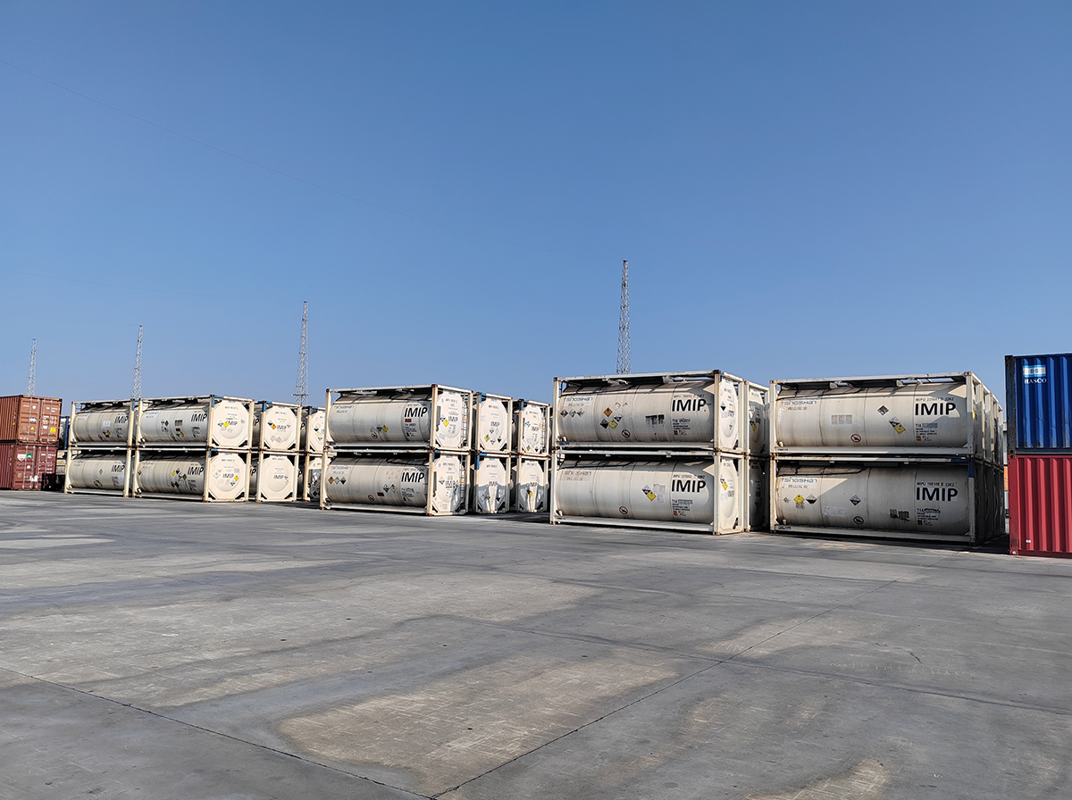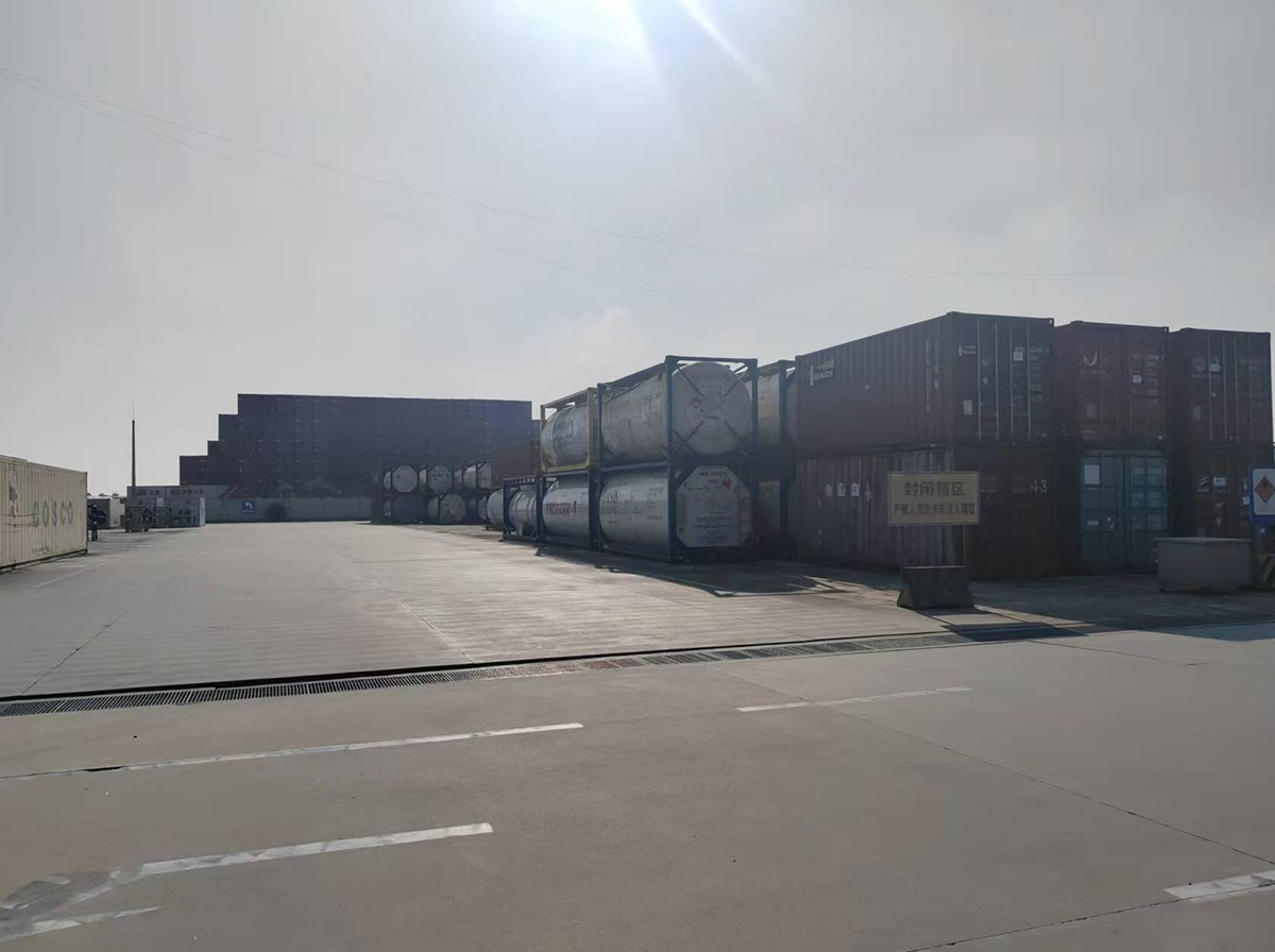 可使用危化品堆场135亩,堆存危化品集装箱(罐)860TEU。甲类危化品仓库及货棚3000平米,乙类仓库2500平米,为客户提供危化品的集装箱装拆箱业务、重箱(罐)堆存业务、散货仓储及分拨业务。